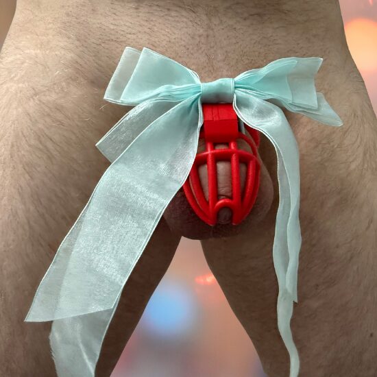 I love having him stand on a chair, arms stretched to reach the top of the tree, balls exposed, cage reflecting the string lights. I tell him to pose for me with a candy cane in his mouth. Sometimes I make him wrap an empty box labeled “His Orgasm,” just so he feels the weight of what he is begging for.