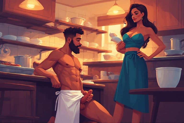 At some point, she slipped down, spun me around, and bent me over my own counter. My heart was racing, my cock straining against the zipper as she pressed her body against my back. Her hand slid down, cupped my cock through the fabric, squeezing hard enough to make me groan. “Not yet, Chef,” she whispered, her lips brushing my ear. “You don’t get to decide when you’re finished. That’s my job now.”