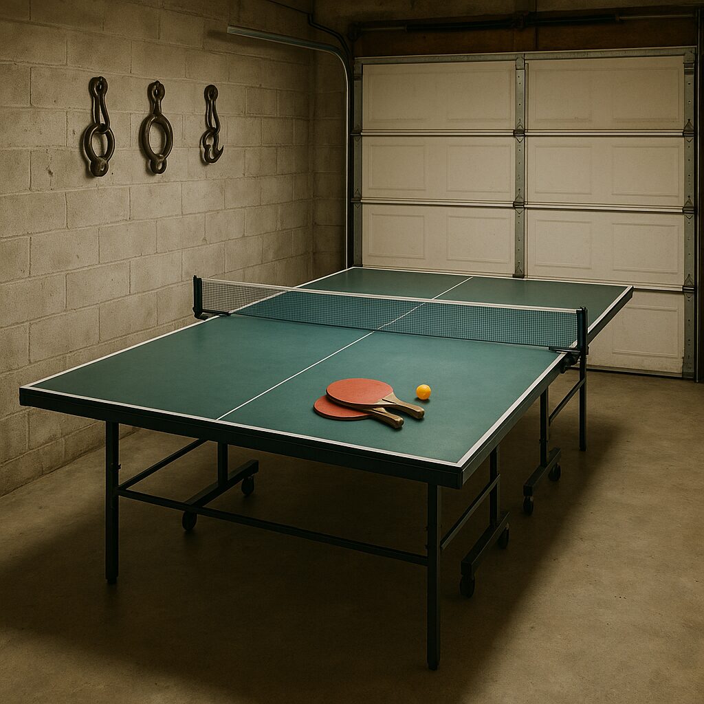 We meet in his garage. There’s a ping-pong table already set up, and he gets positioned at one end. But he’s not playing. He’s bound to the wall behind the table, wrists and ankles shackled, arms and legs spread wide.