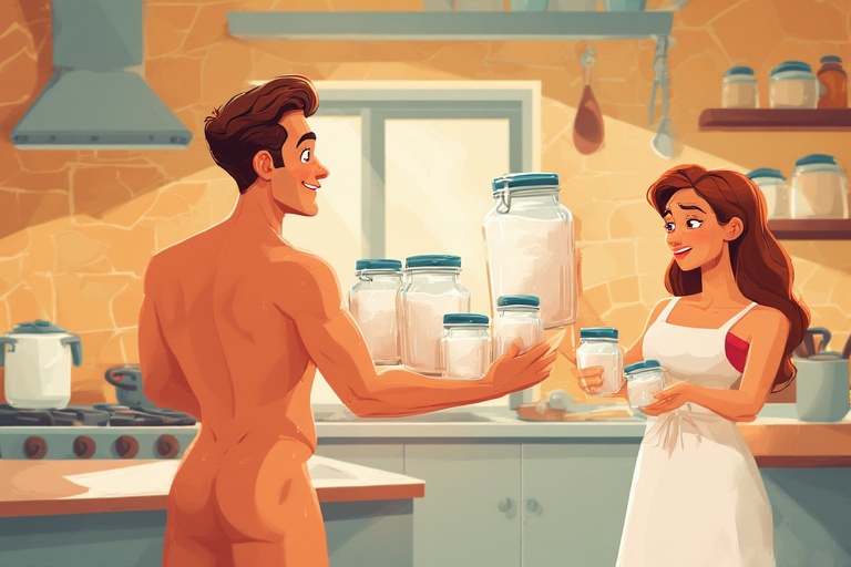 I have always been what my wife calls a “big cummer.” My morning ejaculations especially tend to be heavy, and she decided she wanted to make use of that in a new way. Now, every day, I am required to cum into a glass jar she keeps in the bedroom. She writes the date on the lid and stores it in the fridge. Most days, she makes me go a second time, usually in the afternoon, into the same jar I have to retrieve from the fridge.